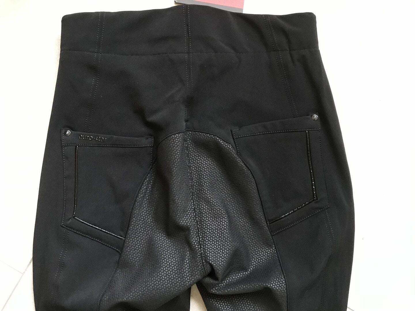 Die Nähte an der Bahn auf der Rückseite bieten dem Gesäß Halt und erzeugen einen Push-Up-Effekt. -Plus-Size-Reithose -Vier-Wege-Stretch-Material -Höhere Taille mit einstellbarer Innentaillierung - Silikon-Vollbesatz - Elastische Beinenden - Kompressionseinsatz an der Innenseite -Vertikale Nähte und vertikal eingesetzte Reißverschlusstaschen - Farblich abgestimmte Paspeln -Modische Hot-Fix-Verzierungenaus PU-Material -Markenverzierungen